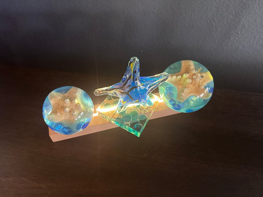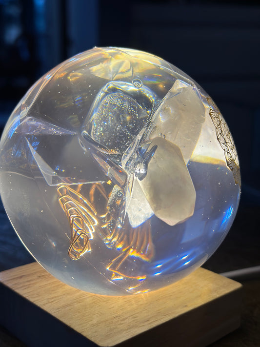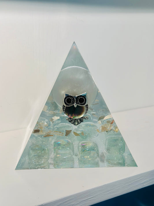 Triple Selenite Sphere Baby Blue Dolphin Pyramid