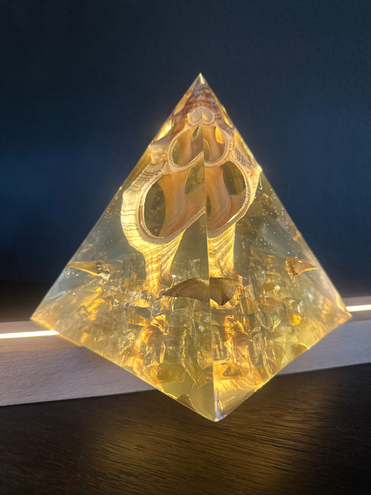 Sliced Fox Shell, Megalodon Teeth Pyramid