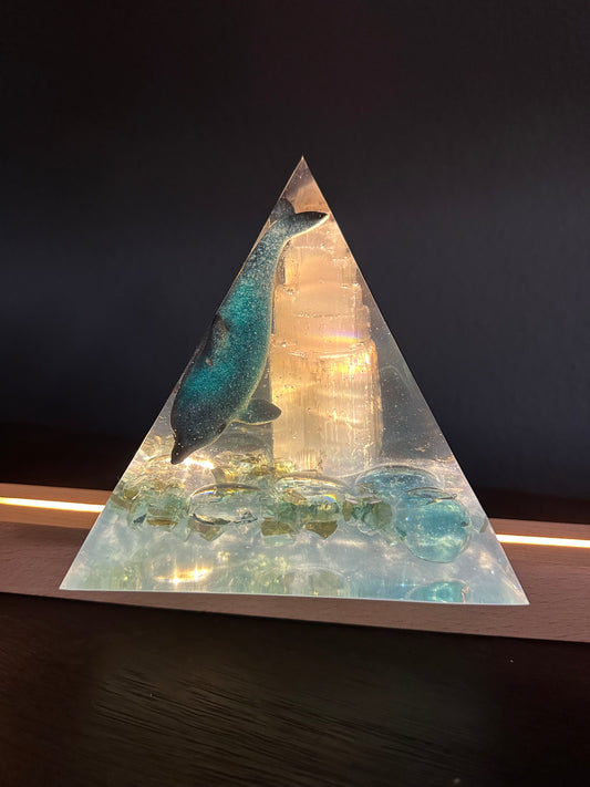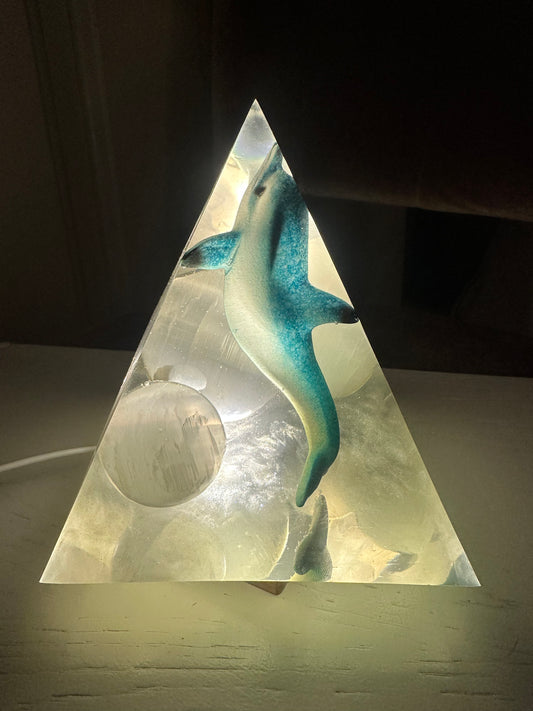 Sold outSelenite Tower Blue Dolphin Pyramid
